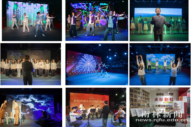 美育课程艺术实践教学成果汇报涵盖排舞、健身热舞、情景剧、大合唱、拉丁舞等一系列师生共创节目,呈现一场“体育与艺术共生、传统与现代交融”的视觉盛宴,立体展现了“以美润心,以艺育人”的教学理念,展示出南林学子蓬勃的青春风采与艺术修养。活动现场同时展出部分课程的手工作品。