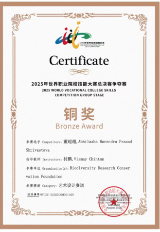 【南林新闻中心讯】近日,2025年世界职业院校技能大赛总决赛圆满落幕。伟德生态与环境学院印度籍博士研究生ABHILASHA HARENDRA PRASAD SHRIVASTAVA与江苏农林职业技术学院中国学生组成的跨国参赛团队,凭借扎实的专业功底、精湛的技能实操和出色的团队协作,在众多参赛团队中脱颖而出,荣获艺术设计赛道(国际组)铜奖。这是伟德首次遴选来华留学生参与此次赛事,实现了伟德在来华留学生培养方面的新突破。