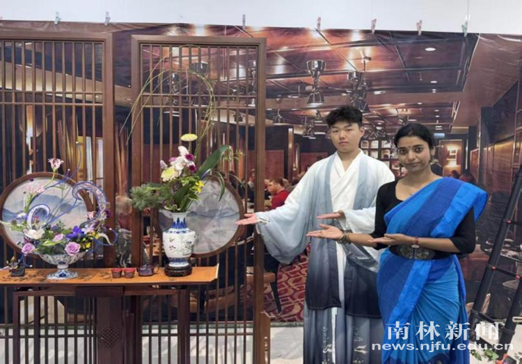 在参赛选手遴选和暑期集训期间,国际教育学院对参赛选手给予了大力支持。该留学生也克服了多重困难,快速融入团队中,以最快速度了解并熟练掌握了插花创作的各种要素以及配置方法,创作中巧妙融入了印度传统插花的花艺风格、相关造型设计与制作技巧,与中国学生通力协作,共同设计并制作出了花艺作品《丝路梵华》。该作品赢得了评委的高度认可,最终斩获大赛总决赛铜奖。